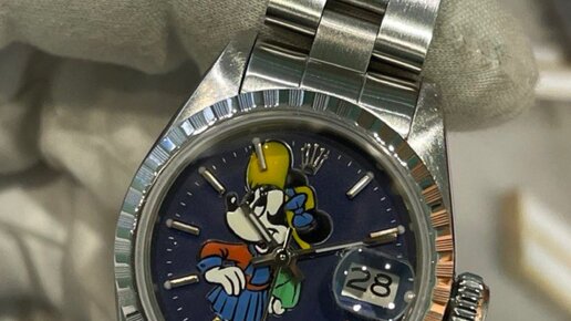 Доброй ночи друзья, коллеги и читатели моего канала. Сегодня покажу вам интересную модель часов. Персонажи диснеевских мультфильмов популярны по сей день и имеют большое количество фанатов, в том числе и Mickey Mouse, который охватил несколько моделей Rolex. Вы знали, что Rolex Mickey Mouse - одни из редчайших моделей у компании? Появились эти часы благодаря сотрудничеству Rolex с Disney, выпускались такие модели как - Datejust, Oysterdate Precision и Oyster Perpetual. Это винтажные женские часы размером 34-36 мм...
