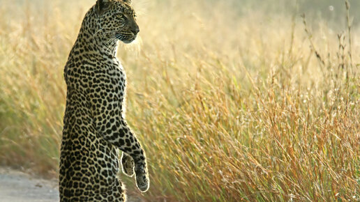 Ничего необычного, просто леопард сел как суслик и высматривает что-то интересненькое. Тс-с-с, не будем ему мешать!
