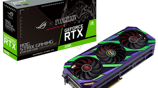 В 2020 году в честь 40-летнего юбилея аниме-сериала Gundam компания ASUS выпустила целую линейку стилизованной продукции, и видеокарту GeForce RTX 3090 Gundam в частности. Хотя не менее популярное аниме Evangelion в этом году никакого юбилея не отмечает, ASUS готовит GeForce RTX 3090 ROG Strix Evangelion Edition (ROG-STRIX-RTX3090-O24G-EVA). На данный момент ASUS официально ещё не анонсировала эту модель, но тайваньский магазин CoolPC уже начал принимать предзаказы за 64 000 местных денег, что эквивалент ~$2200...