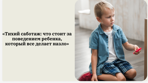 "Тихий саботаж" - что стоит за поведением ребенка, который все делает назло