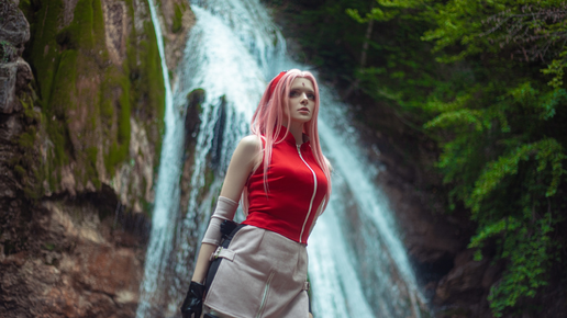 Сакура Харуно — одна из самых ярких и сильных героинь вселенной «Наруто». От решительной ученицы Цунаде до опытной ниндзя и верного союзника команды №7 — её путь полон преодолений и побед. В этом косплее отлично передана энергия и характер Сакуры: уверенный взгляд, готовность к бою и гармония с природой, которая так близка миру шиноби. Атмосфера водопада и скалистого окружения делает образ ещё более живым, словно кадр из самого аниме. Фэндом: Наруто