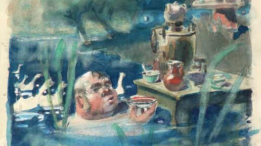 Иван Никифорович с самоваром и в пруду