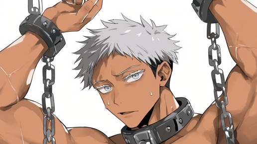 Создано на основе запроса: satoru gojo from jujutsu kaisen, chains and collar, tanned, japanese banana fish anime character, muscular body shape, vibe of ninagawa mika, 色気, sweating 2d anime, anime by masaaki yuasa --- Автоперевод: Satoru Gojo из Jujutsu Kaisen, цепей...