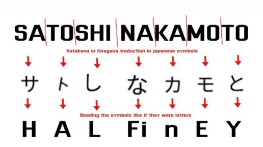 Satoshi = Hal Finney? Вот такой конспирологический ребус гуляет по криптотвиттеру. Берут имя Satoshi Nakamoto, записывают его японскими символами — и читают их так, будто это латинские буквы. Получается… HAL FinEY. Красиво? Да. Доказательство? Нет. История про Хэла Финни и Биткоин вообще одна из самых сильных в криптомире. Первый получатель транзакции от Сатоши, один из старейших криптографов, человек, который реально жил идеей цифровых денег. И умер в 2014 году, так и не раскрыв секрет. Это как в комиксах: герой уходит, оставляя загадку...