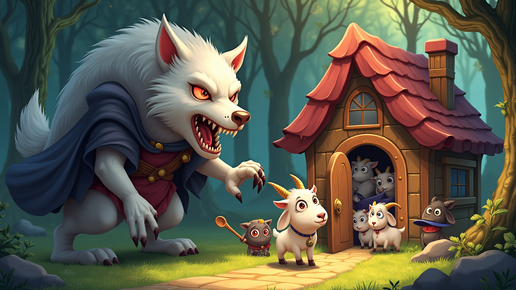 В лесу, где сакуры цвели круглый год (потому что аниме), стояла избушка — милая, с занавесочками и вывеской "Козья база". Там жила Коза — мамаша с характером героини сёдзё: длинные белые волосы, огромные глаза и голос, как у idol-звезды. У неё было семеро козлят — шустрые малыши, каждый с уникальной пафосной фразой. Однажды Коза собралась на рынок за капустой для супа. Она выстроила козлят в ряд и пропела: — Ня-ня, мои детки! Я ухожу, а вы заприте дверь! Если придёт Волк-сан, не открывайте! Он — злодей первого сезона! — Да, мама-тян! — хором крикнули козлята, салютуя, как команда героев...