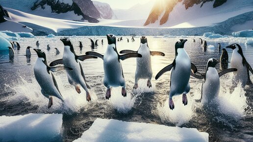 Пингвины – это не только очаровательные и симпатичные птицы, но и удивительно приспособленные существа, способные к выполнению поразительных физических подвигов. Одним из таких подвигов является их способность к "порхающему плаванию" – динамичному и эффектному способу передвижения, который позволяет им прыгать из воды на высоту до трех метров. Этот уникальный маневр не только помогает пингвинам быстро и ловко перемещаться из воды на лед, но и является эффективным способом уклонения от морских хищников, таких как касатки и морские леопарды...
