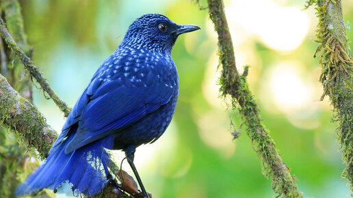 Птица семейства дроздовых с синим оперением разных оттенков. Поэтому и название - "Синяя птица" Обитает в Центральной и Юго-Восточной Азии, располагаясь вблизи горных ручьёв. Птица любитель плескаться в воде и прыгать по камням...