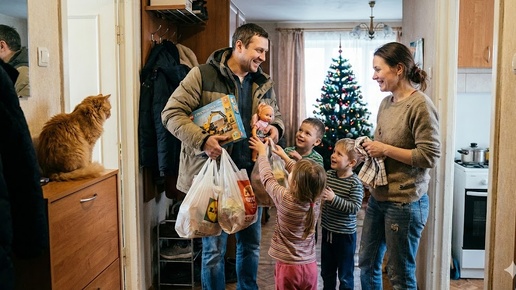 Максим решает сделать предложение девушке в костюме Деда Мороза, но путает адреса и попадает в квартиру к одинокой женщине с тремя детьми