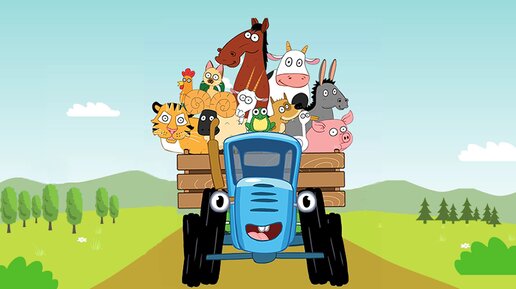 По полям Синий трактор едет к нам – Песенка мультик для детей