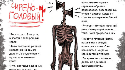Сиреноголовый (англ. Siren Head ) — загадочное гуманоидное существо- с необычайно высоким и костлявым телосложением...