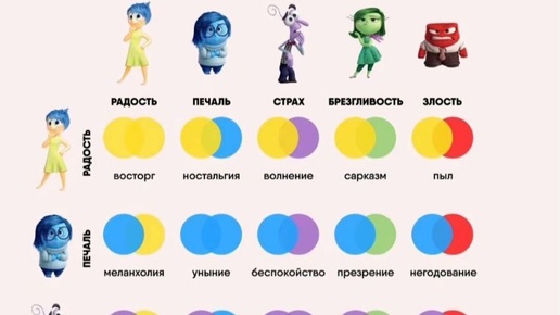 Специалисты из организации Six Seconds (крупнейшая в мире организация в области эмоционального интеллекта) вдохновились мультфильмом «Головоломка» и предложили интересный взгляд на смешанные эмоции. Например, что произойдет, если радость столкнется с брезгливостью, а грусть — со страхом? … Полюбившийся детям...