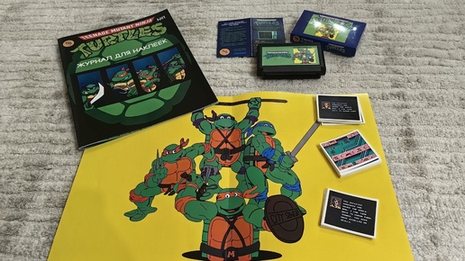 Журнал для наклеек и картридж с мануалом по игре Черепашки Ниндзя 1 на денди!