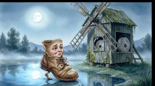 Жила-была старая Мельница на краю деревни. Она была добрая и трудолюбивая, но однажды перестала вращаться. Ветра больше не приходили, и она стояла грустная среди огромного поля зерновых колосьев, которым тоже хотелось стать мукой, хлебом и ароматными булочками. Рядом стоял маленький домик, где жили любимые детские игрушки — веселый резиновый Тапочек и красивая лакированная Туфелька. Однажды вечером, сидя на крыльце, Тапочек услышал тихое рыдание. Оказалось, это плакала старушка-Мельница: — Ах, какая...