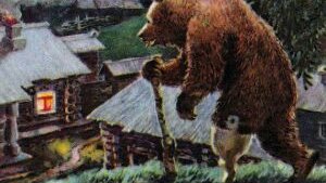МЕДВЕДЬ — ЛИПОВАЯ НОГА Жили-были старик со старухой. Посеяли они репку. Вот повадился медведь репку у них воровать. Старик пошел посмотреть и видит: много репы нарвано да разбросано кругом. Воротился он домой и рассказывает старухе. А она ему говорит: — Да кто же репу нарвал? Если бы люди, так унесли бы. Наверное, это медведь проказит! Поди-ка, старик, покарауль вора! Старик взял топор и пошел караулить на ночь. Лег под плетень и лежит. Вдруг приходит медведь и давай таскать репу — нагреб целое беремя и полез через плетень...
