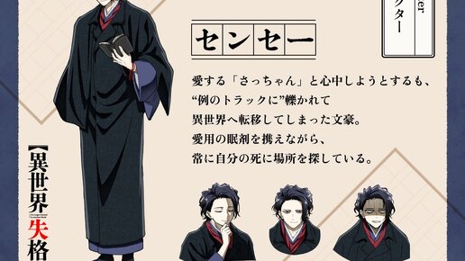 Постер персонажа Осаму Дадзай из анонсированного аниме «Isekai Shikkaku» («Дисквалифицирован по жизни»). Премьера в 2024 году.