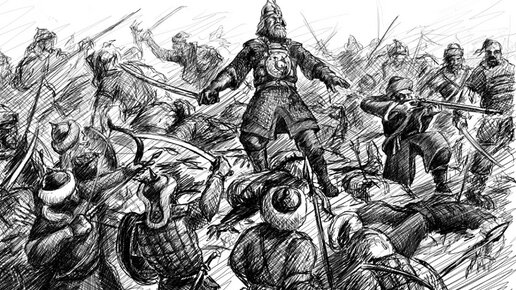 Хан Кучум уже был повержен и бежал. Но он не переставал искать способа истребить дружину Ермака. И вот, августовской ночью он неожиданно совершает нападение на спящий казачий стан, расположившийся вблизи реки Иртыш. В эту ночь разразилась буря. Шел сильный дождь, непрестанно слышались раскаты грома и сверкали молнии, бушевал страшный ветер. Все казаки были объяты беспечным сном. Сам же Ермак не спал. Он сидел на берегу реки и был объят думой. Он размышлял о смысле их жизни и совершенных подвигов...
