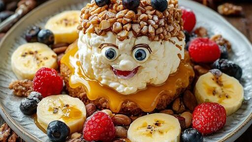 Смешарики из Творожного Пухляша! Ингредиенты: • 200 г творога • 1 банан • 1 ст. л. меда (если нет аллергии) • 50 г орехов (по желанию) • Ягоды (для глаз и носиков) Приготовление: 1. Разомните творог с бананом и медом (2 минуты). 2. Сформируйте "смешариков" — маленькие шарики...
