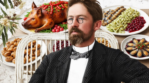 Антон Павлович Чехов имел необычные гастрономические пристрастия и использовал их в своих сочинениях. Он умудрялся благодаря им показать не только вкусы разных людей, но и социальное положение, которое они занимали, их деятельность и даже философский смысл жизни. Приготовление блинов Чехов называл магией, устриц считал мерзкими и скользкими, вишню обожествлял, карасей в сметане называл любимым блюдом из детства. Также были и другие блюда: поросенок с хреном, селедка с лучком или же простая редька с солью...