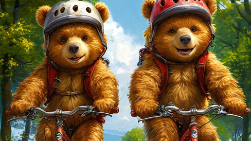 Ехали медведи на велосипедах Сказка Жили-были два медведя, Любили спорт велосипедный. Катались стоя и верхом. Смеялись звери все кругом. Однажды Мишки так решили: - Мы трюки зря, что ли учили? - Давай проедем по шоссе, Вот удивятся тогда все. Мелькают спицы в колесе, А Мишки мчатся по шоссе. Быстрей вперёд! Почти летят, И на дорогу не глядят! Смотри, любуйся весь народ, Здесь представление идёт! Мишутки разом вдруг вскочил, И дальше стоя покатили. Вот один из них отстал, Другой сильней педали жал...