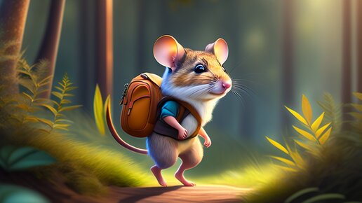 Жил-был мышонок Тим, который был очень любознателен и любил путешествовать. Однажды он услышал, что его друг, мышонок Микки, уехал в далекое путешествие и до сих пор не вернулся. Тим не мог смириться с тем, что его друга нет рядом, и решил отправиться в поиски. Тим взял с собой свой любимый рюкзак, наполнил его едой и питьем, чтобы не оставаться голодным в пути, и отправился в путь. Он прошел через поле, через лес, плыл по реке и перепрыгивал через камни, чтобы добраться до места, где, по слухам, видели Микки в последний раз...