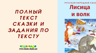 Русская народная сказка Лисица и волк (+ задания к сказке)