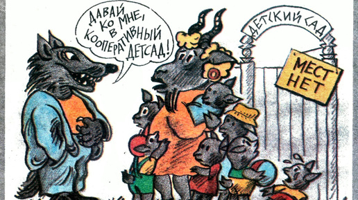 Возьмем старый, всем известный сюжет, поместим его героев в современные реалии и получим совершенно новую историю. Этот нехитрый прием давным-давно используется в литературе и кино. И жанр карикатуры не исключение. На нашем канале уже выходили подборка про героев басни Крылова «Квартет», которым по воле художников и редколлегии журнала «Крокодил» пришлось критиковать негативные явления в жизни советского общества. Ссылка на публикацию будет в конце статьи. Настало время и сказки «Волк и семеро козлят»...