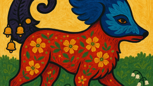 “Волшебная сказка по мотивам украинской художницы Марии Авксентьевны Примаченко. По картине «Собака Красавица», 1964 год.” Давным - давно на белом свете. Жила - была необыкновенно красивая собака по имени Собака - Красуня. Так уж вышло, что она с детства не походила на своих братьев и сестёр. Ни по характеру, ни по внешности. Она очень выделялась из всей своей семьи. Вместо коричневого иль красно - коричневого меха. Собака - Красуня практически была вся рыжей. А когда солнечные лучи попадали на её мягкую и пушистую шёрстку...