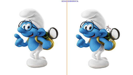 Тест на внимательность: Смурфик. Найди 5 отличий.