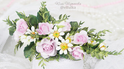 Рада приветствовать вас на моем творческом канале! Представляю вашему вниманию нежную и романтическую заколочку из ромашек и розочек. Представленная заколка оформлена большим количеством маленьких растительных элементов ручной работы (15 цветиков и 26 веточек-листочков). Самый маленький цветочек размером 1см, а самый большой 2,5см. Все растительные элементы заколки сделаны вручную, из фоамирана и детально проработаны. Благодаря чему цветочная композиция выглядит очень естественно и натурально. Цветы и зелень легкие, не мнутся, не боятся воды, падений...