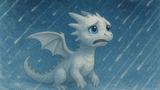 Жил-был маленький белый дракончик по имени Снежик. Он был не больше большого котёнка, с блестящей чешуёй, похожей на иней, и глазами цвета утреннего неба. Снежик родился высоко в горах, где вечные снега и ледяные ветра были его родным домом. Его семья жила в ледяной пещере, спрятанной среди скал, и каждое утро мама-дракониха учила его летать и дышать морозом. Однажды, увлечённый погоней за снежинкой, Снежик улетел слишком далеко от дома. Ветер усилился, облака затянули небо, и малыш потерял из виду горы...