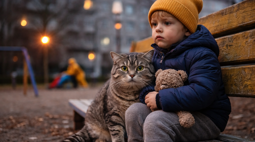 Кошка “усыновила” чужого ребёнка во дворе — и сделала это лучше взрослых