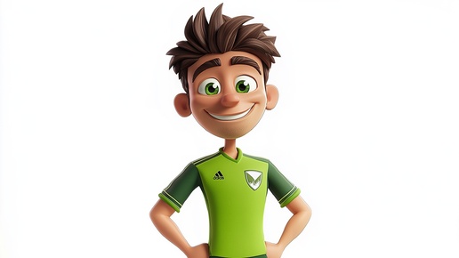 Создано на основе запроса: green colored game character, soccer player, happy posing in front of camera, cartoon style, full white