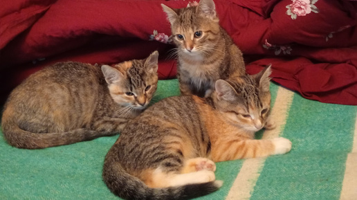 Малыши нас быстро вылечили! Как тут поболеешь, если по тебе носится банда котят! Очень скучали...Несмотря на то,что их отлично кормили им не хватало общения, разговоров, ласки! Даже взрослая мама Буся от меня не отходит, спит прямо на моих ногах, не могу пошевелиться. Это чудо, а не котёнок ! Мечта всех кошатников! Всю ночь со мной на подушке. Муж просыпался ночью, говорит - так мило, спите нос к носу! И мурлычет постоянно,как трактор! Если я иду, она с разбега может прыгнуть и повиснуть у меня...
