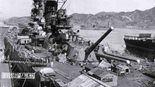 Clearly visible Yamato guns of the main caliber (460 mm) and medium-caliber weapons (155 mm) behind them...