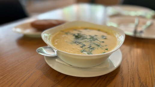 Мы обожаем этот суп за густоту, нежную кремовую текстуру и пряный аромат с нотками свежей кинзы, имеретинского шафрана, лука и чеснока. Кроме лука, овощей в супе нет. Только мясо, бульон и яйцо. А густоту ему придаёт мучная заправка и взбитый с лимонным соком или уксусом желток.