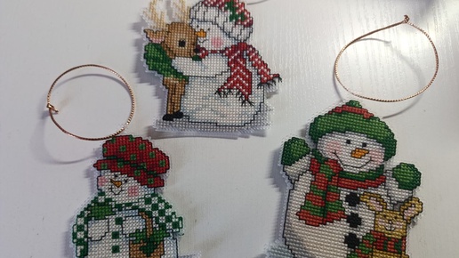 Семья снеговичков (вышито подбором)
