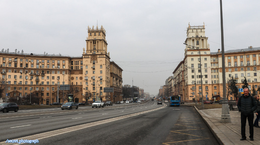 А если быть точным, то два дома, построенные полукругом, словно парадные ворота в Москву, стоящие там, где когда-то располагалась Калужская застава и одноименная площадь, в шестидесятые годы переименованная в площадь Гагарина. Дом справа, состоящий из двух частей (№37, корпус 1 и №37А), строился в два этапа, в 1940-1941 годах по проекту архитектора Михаила Григорьевича Бархина и в 1946-1953-м ленинградскими архитекторами Евгением Адольфовичем Левинсоном и Иваном Александровичем Фоминым соответственно, как дом для сотрудников НКВД, а позднее МВД...