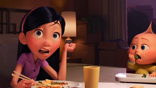 Суперсемейка - мой любимый фильм Pixar, но если посмотреть на 5 главных героев, один из них не похож на других, Боб и Дэш - светловолосые парни с физическими способностями сверхчеловеческого уровня, Хелен Парр и Джек-Джек - рыжие со способностями к изменению тела,но Фиалка - это черноволосая девушка с невидимостью и способностями манипулировать энергетическими полями. Цвет ее волос может быть связан с тем, что мы не видим ее бабушку и дедушку, поэтому, возможно, у одного из них были более темные...