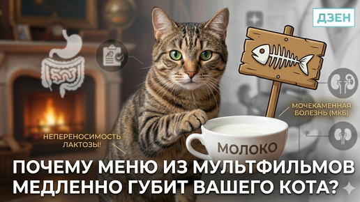 Если попросить любого человека нарисовать идеальный обед для кота, в 9 из 10 случаев на картинке появится блюдце с молоком и скелет рыбы. Этот образ вшит в наше подсознание сказками и мультфильмами. Но если бы современные ветеринары попали в эти мультики, они бы схватились за голову. Давайте разберем, почему «бабушкин метод» кормления — это опасное заблуждение. Большинство взрослых кошек страдают непереносимостью лактозы. Важно: Если ваш кот пьет молоко и «вроде бы всё нормально», это не значит, что ему полезно...