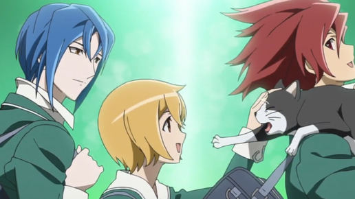 "Чтоб потрясти мир и круто провести время в школе" Вака Агимаки стройная, активная с короткими волосами цвета "янтарь" и Сугато Шинто\Шиндо, его цвет волос ближе к оттенку "ослепительно синий" "откачали" на пляже красноглазого с карминовыми волосами Цунаши Такуто\ Такт. Парень пропустил последний паром и решил вплавь добраться до острова Южного Креста, он новый переведённый ученик. "Классный ты, Такт. Даже сейчас не вешаешь нос. - А надо?" Очнулся он в доме Шинто и за завтраком, где им прислуживали две горничные...