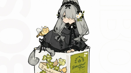 Коробка выполнена в жёлтом и оранжевом цвете. По бокам силуэт данной фигурки (спойлерят) Блистер как всегда радует качеством. Комплектация: -Кошко-девочка; -Кото-пчёлка; -Металлическая чайная баночка; -Пуфик для кошко-девочки. Фигурка такая же миленькая, как и прошлая. Баночка и пчёлка супер. Девочка это классическая британская короткошерстная кошка серого цвета. Волосы, хвостик и лапки серые(на лапках чёрные подушечки). На ней надето чёрное платье. По бокам платья по одному бантику и на спине два бантика чёрного цвета...