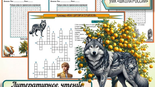 "Иван-царевич и Серый Волк" Кроссворд + Филворд + Ответы. 3 класс. Литературное чтение. Русская народная сказка. Можно редактировать