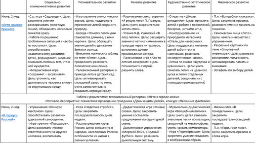 Комплексно-тематическое планирование работы с детьми в подготовительной группе в летний оздоровительный период.