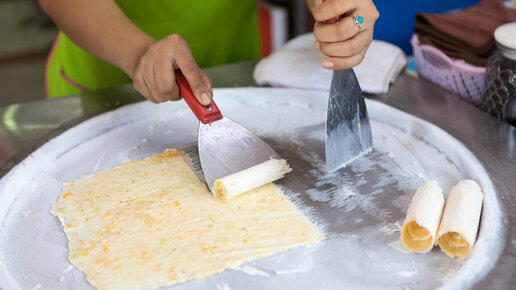 Тайское мороженое - это десерт из мороженого, но в необычной форме - оно имеет форму роллов...