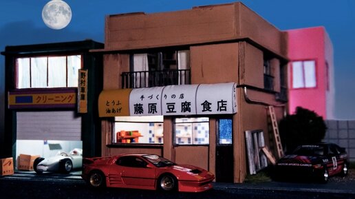 1/43 диорама локации магазина тофу Фудживары (Initial D)
