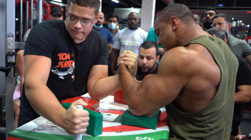 Тренер Артём157 тыс читали · 5 лет назадПодписатьсяРусский паренек против сильнейшего бодибилдера в мире. Бой на рукахИтак, сегодня прошел бой в армрестлинге "Школьника" с Ларри...Кто кого?