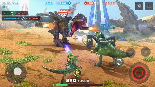 Dino Squad: TPS Dinosaur Shooter — это нетривиальный PvP-шутер для Android и iOS, в котором мы будем управлять не элитными бойцами из команды спецназа, а самыми настоящими динозаврами, облаченными в броню и увешанными всевозможными пушками и турелями. Игра получила оригинальный дизайн весьма просторных 3D-локаций, качественное графическое оформление с отличной прорисовкой деталей, красивую анимацию с яркими спецэффектами и достойное звуковое сопровождение. Поскольку речь идет о командных сражениях, выходить в бой мы будем вместе с группой единомышленников, отмеченных на карте синими маркерами...