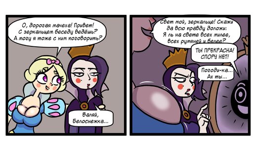 Сказка для взрослых - 8 смешных комиксов о Волшебном зеркале, в которых ответ на вопрос о том, кто всех милее, оказывается не так-то прост