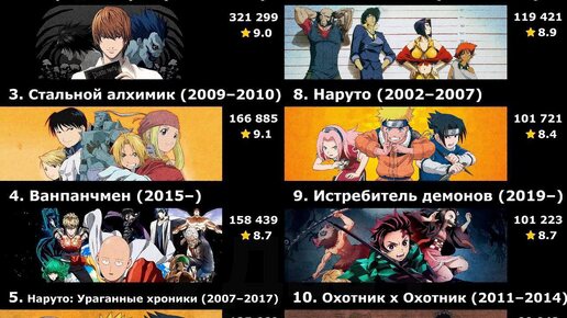 Топ-50 аниме с IMDb, которые стоит посмотреть 🍿🔥 Сохраняйте себе этот список самых обсуждаемых и популярных тайтлов по версии IMDb! В подборке только проверенные хиты: 1. Attack on Titan 2. Fullmetal Alchemist: Brotherhood 3. Death Note 4. Steins;Gate 5. Hunter x Hunter (2011) 6...
