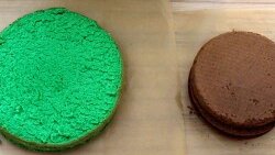 Пошаговое приготовление Шаг 1: По форме как на фото испечь два бисквита. Дать им остыть и разделить каждый на три коржа. Пока остывают бисквиты Приготовьте для начинки маскарпоновый и шоколадный кремы...